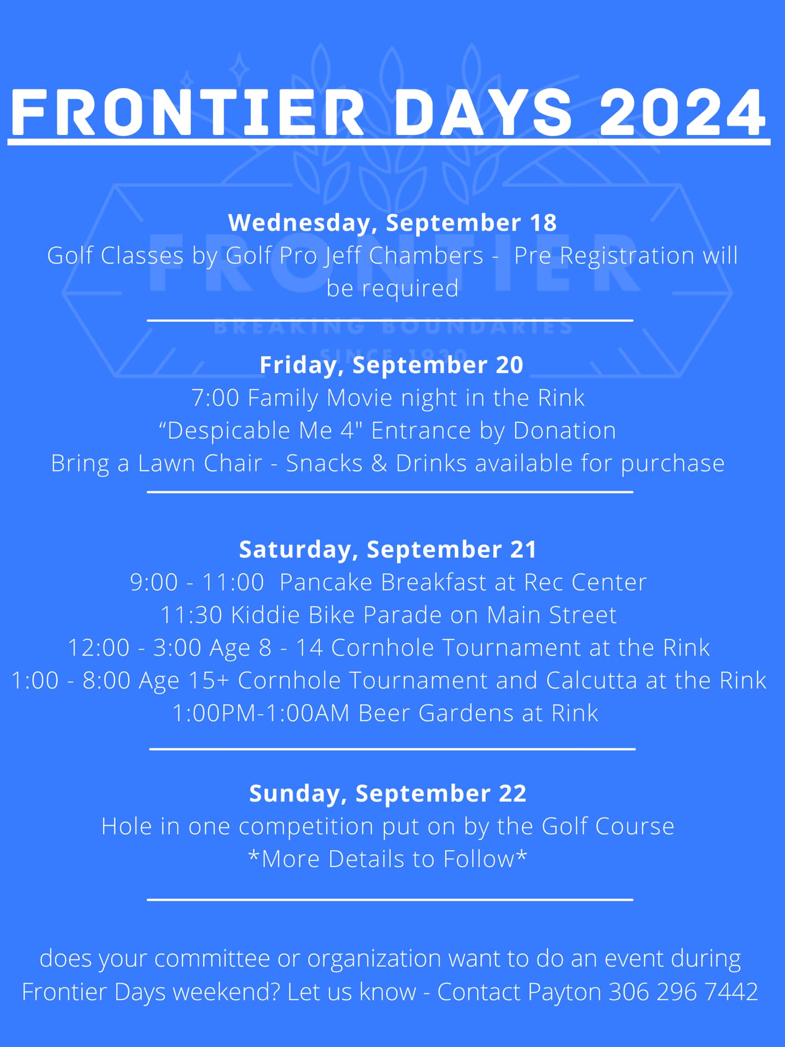 Does your committee or organization want to do an event during Frontier Days Weekend? Let us know!